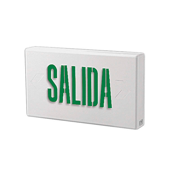 Letrero de Salida, Color de Letras Verde, Número de Caras 2, Voltaje – Luminarias de Emergencia y Señalamientos de Salida 120/240, Watts de Luminaria 3, Profundidad 2-1/2 pulg., Altura 8-7/8 pulg., Ancho 12-1/4 pulg., Montaje Pared, techo y Bandera.